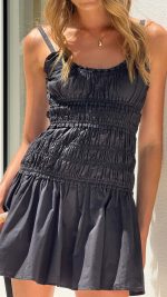 Be the first to review “Toperth Black Ruffled Scoop Neckline Shirred Mini Dress” Cancel reply