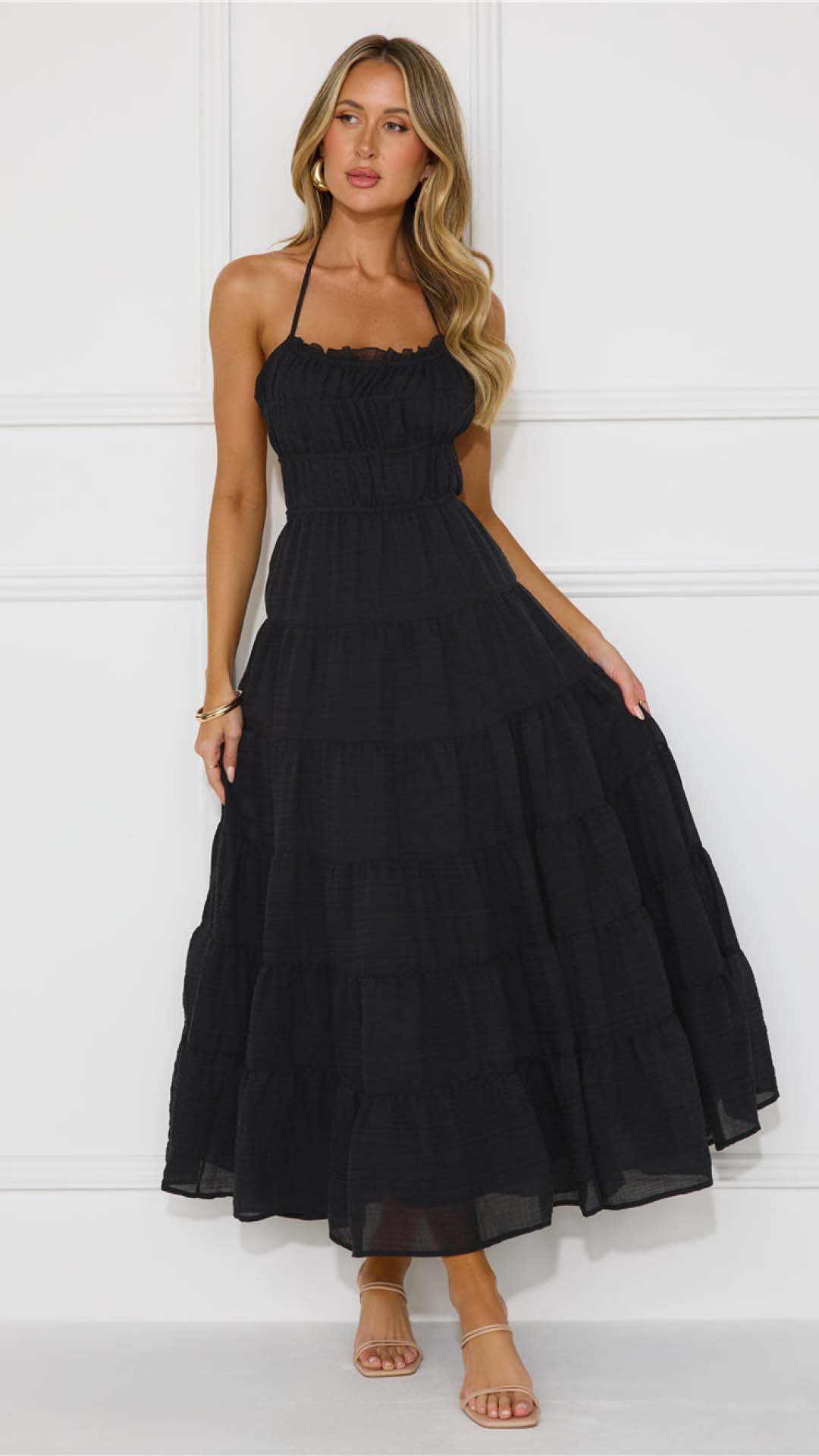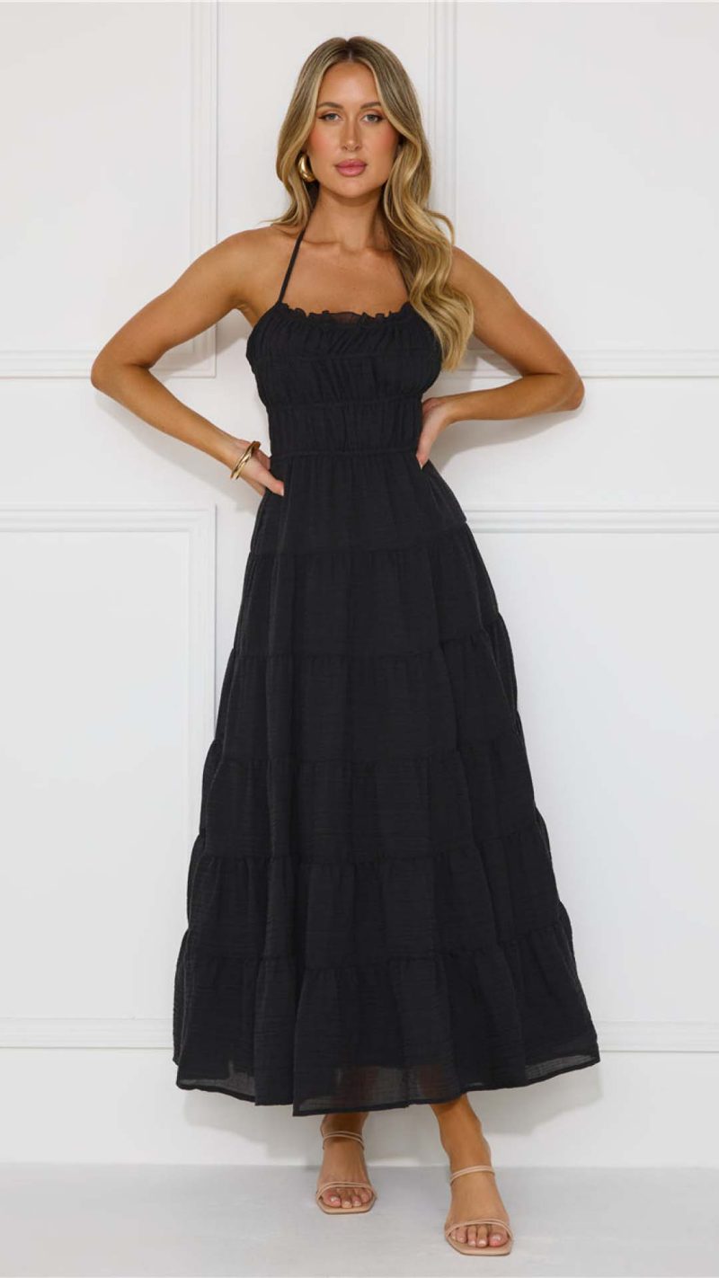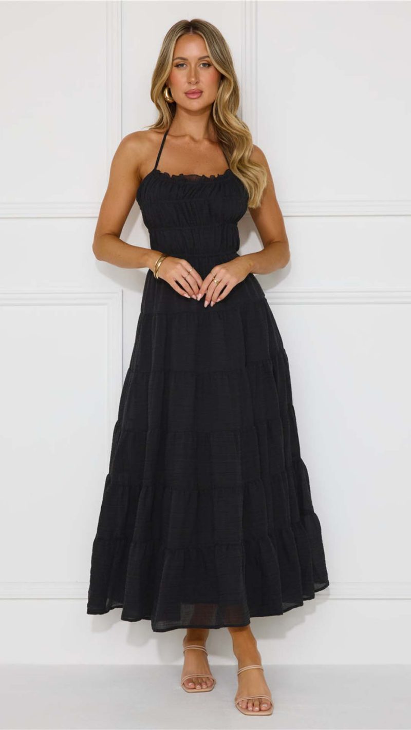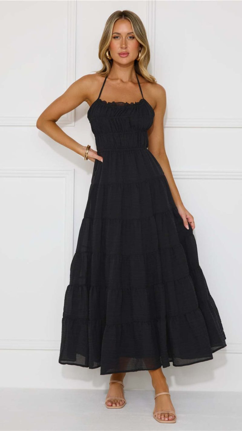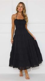 Be the first to review “Toperth Black Tie-Back Shirred Tiered Halter Maxi Dress” Cancel reply