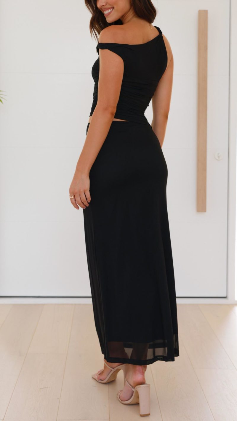 Turn heads in this Twisted Strap Cut-Out Ruched Mesh Maxi Dress. Featuring a soft mesh fabric, flattering ruched details, and a stylish side cut-out, it’s perfect for showcasing your elegant and confident style.