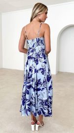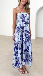 Graceful and stylish, this blue floral maxi dress features adjustable straps and an elasticated back for a comfortable yet flattering fit. The flowy silhouette and lightweight fabric make it perfect for vacations, brunch dates, or casual outings. Pair it with white sandals and delicate jewelry for an effortlessly chic look.