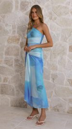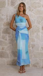 Toperth Blue One-Shoulder Gathered Maxi Dress