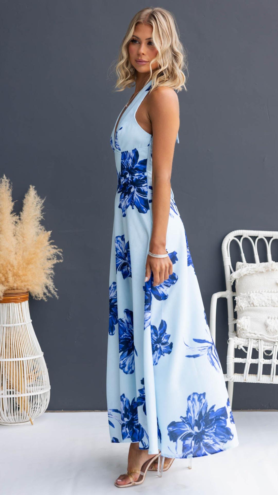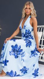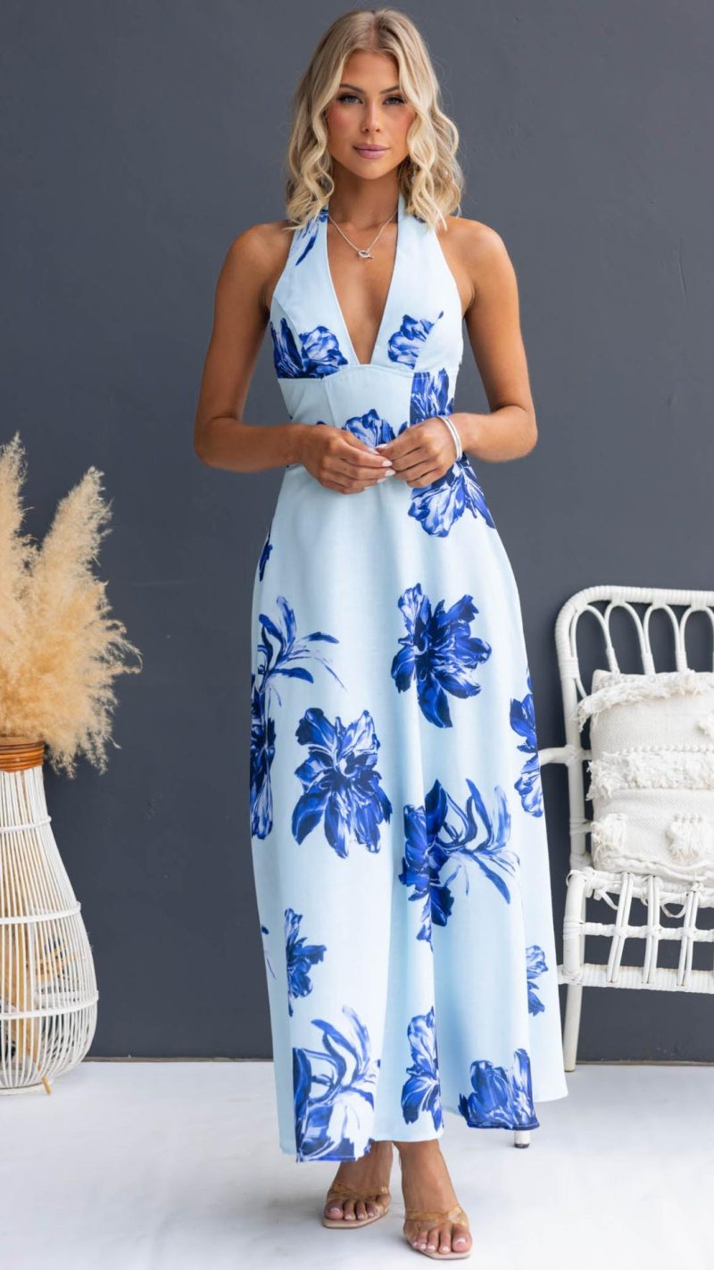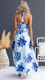 Be the first to review “Toperth Blue Plunging Halter Lace-Up Floral Maxi Dress” Cancel reply