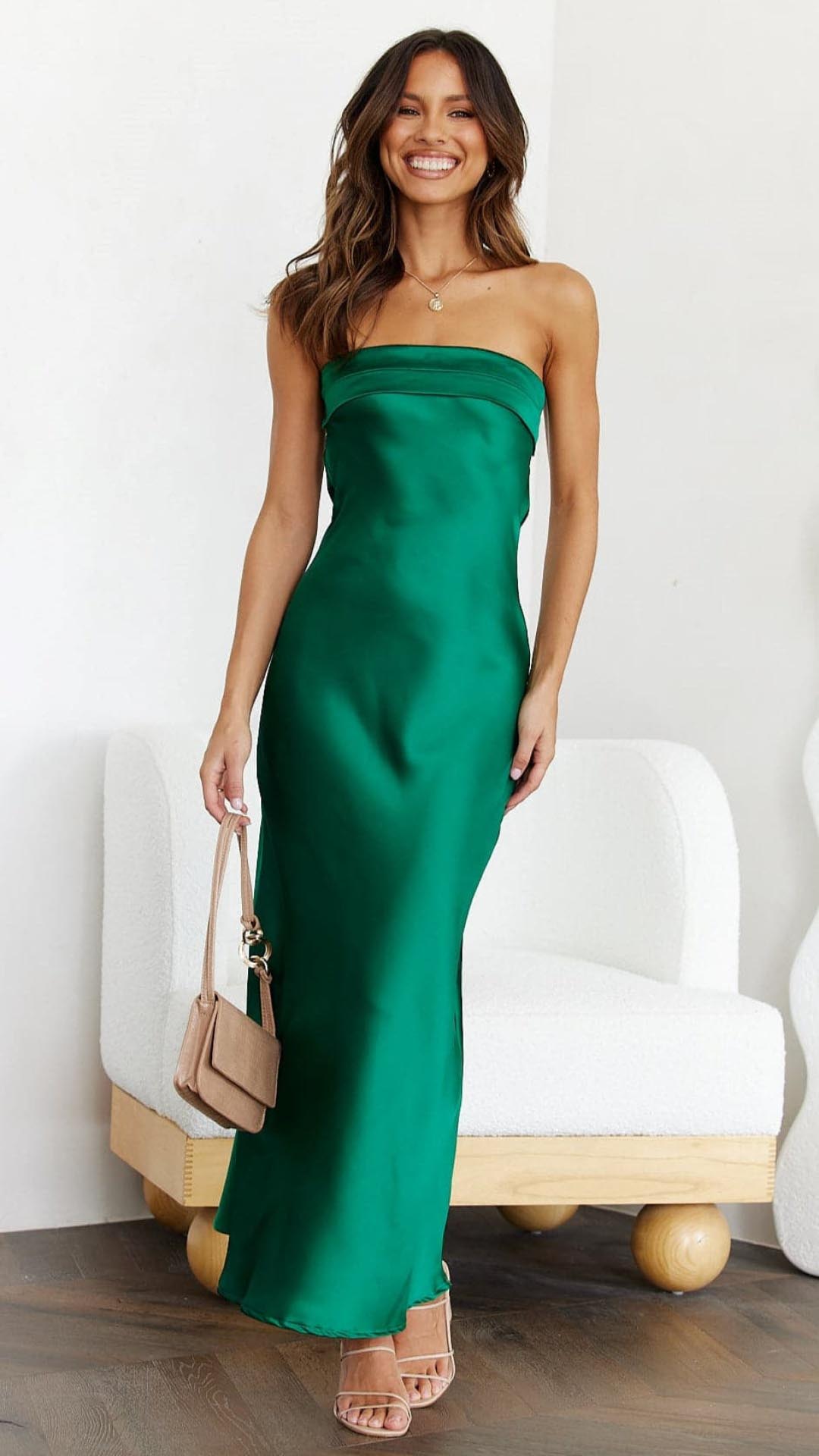26 reviews for Toperth Emerald Satin Strapless Cowl Back Maxi Dress