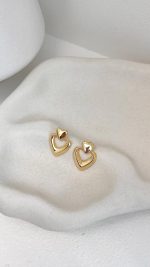 Design Note — Polished gold plating defines this double-heart silhouette, where an open-frame lower tier keeps the profile airy. Secured by a stud closure, the 3cm drop offers a romantic finish.