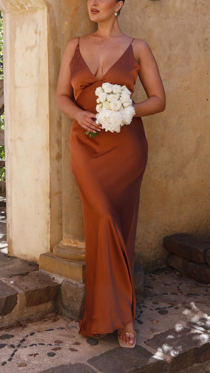 Exude effortless sophistication in this luxe satin maxi dress, featuring a plunging V-neckline, silky smooth fabric, and ultra-thin straps. Designed for formal events, parties, or romantic evenings, this gown pairs perfectly with nude heels and gold accessories for a show-stopping look.
