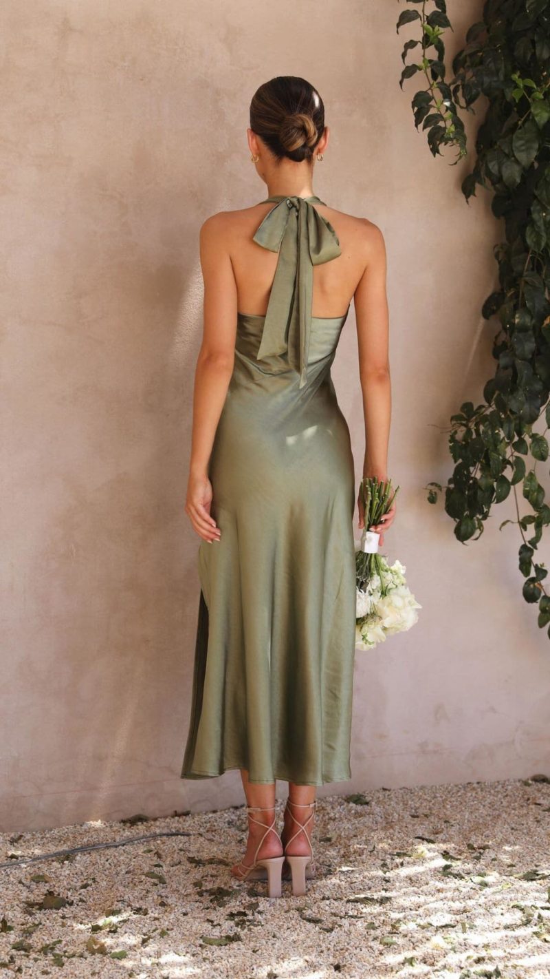20 reviews for Toperth Olive Halter Cowl Neck Satin Maxi Dress