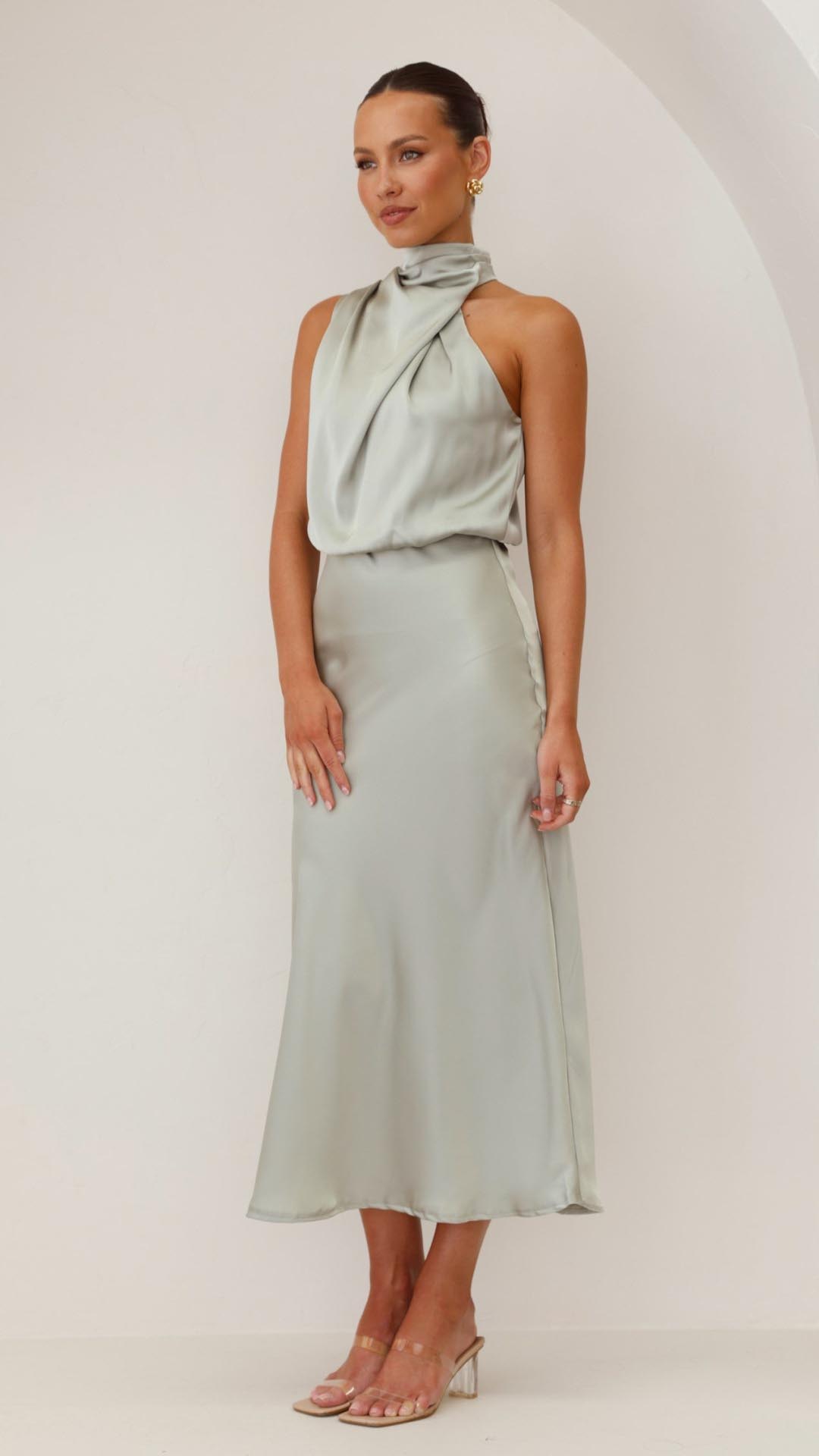 Wearing this dress made me feel so elegant and confident all day! The silky material and beautiful sage color were perfect for the occasion. We all received so many compliments and felt amazing standing by our best friend on her big day. Absolutely loved it!