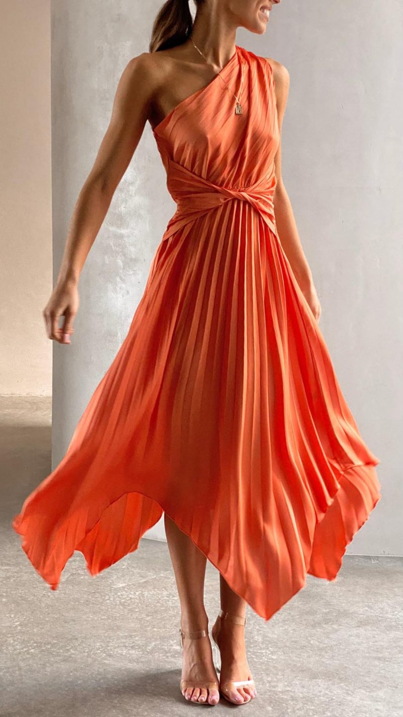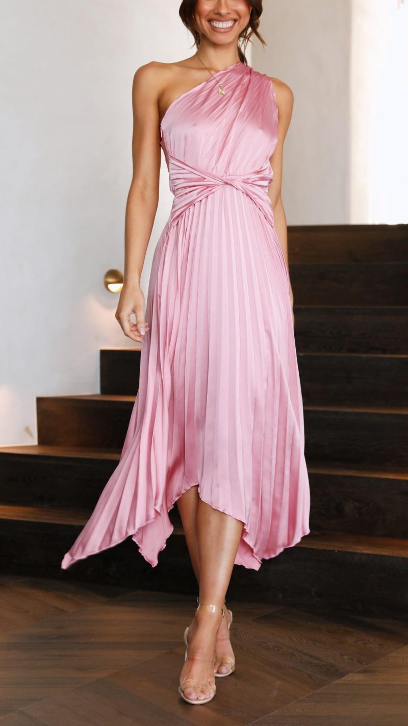 This One Shoulder Midi Dress will be your new favourite this event season! Featuring a one shoulder design, twisted waist design and pleated asymmetrical skirt this midi was made to flatter. This midi is the perfect dress for any spectacular occasion from parties to wedding attire.
