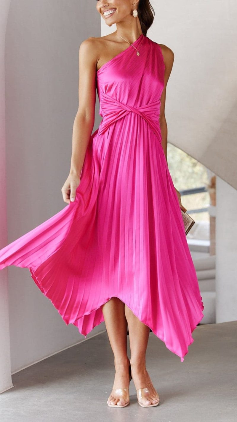 40 reviews for Toperth One-Shoulder Pleated Midi Dress