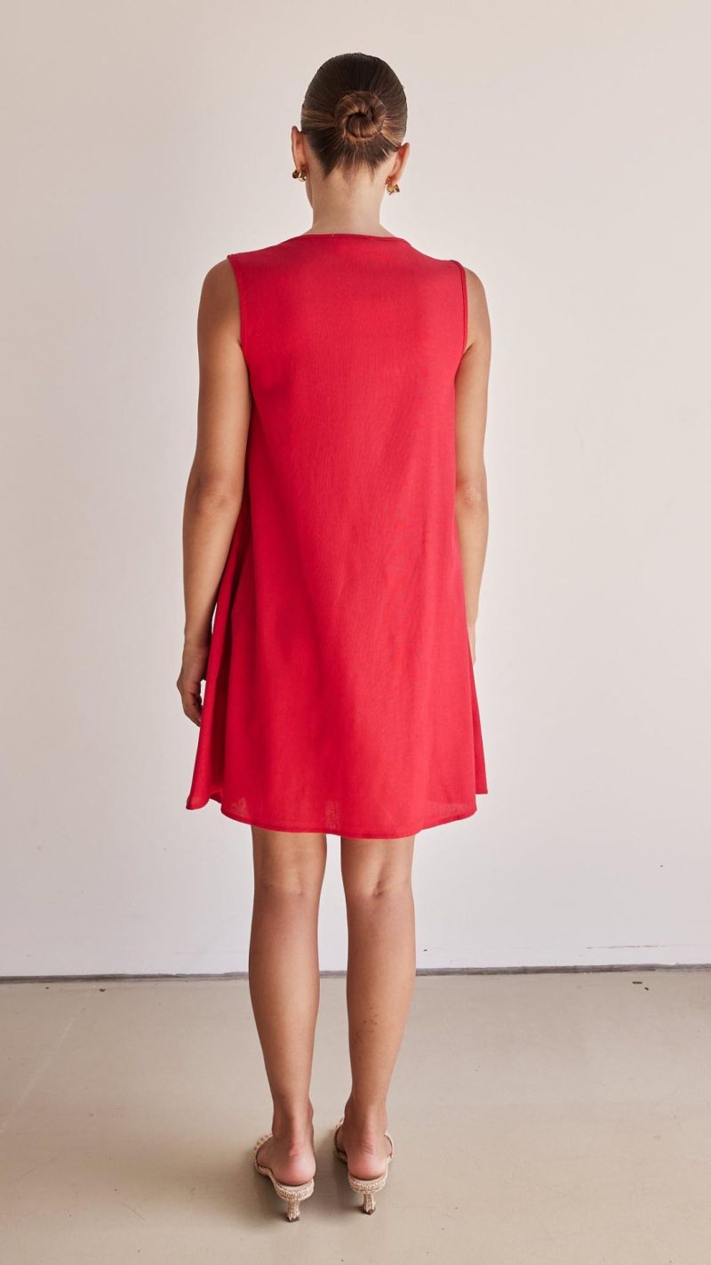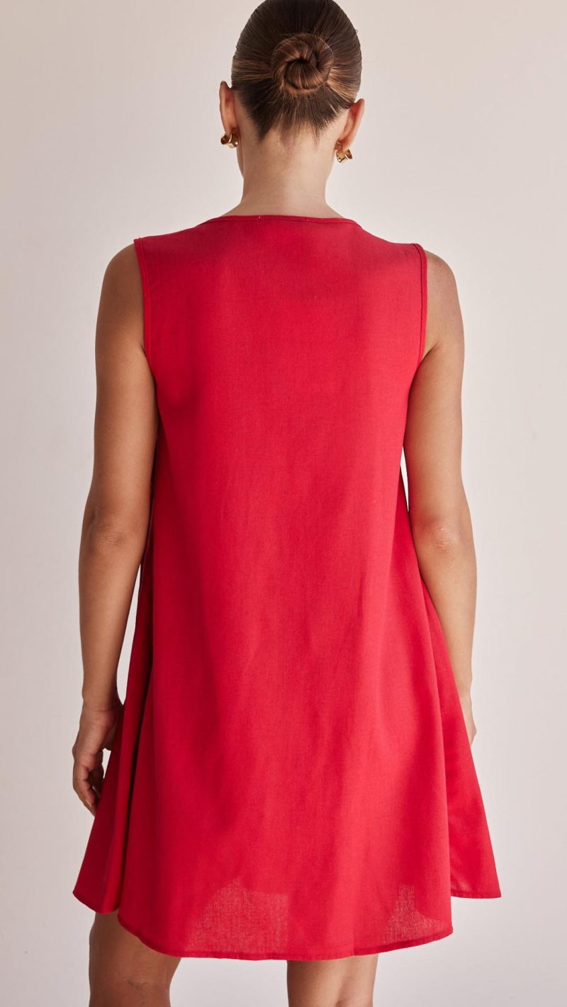 Add effortless charm to your wardrobe with this red pleated mini dress. Featuring a tie-up front and relaxed fit, this dress combines casual elegance and comfort for versatile styling.
