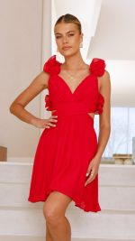 Toperth Red Ruffle-Strap Cutout Fit-and-Flare Mini Dress