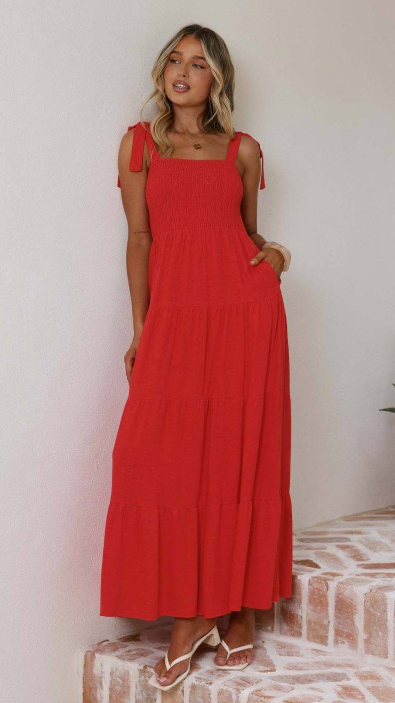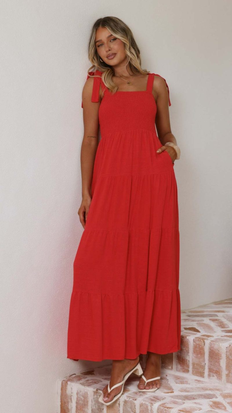 Be the first to review “Toperth Red Tie-Strap Pocketed Shirred Maxi Dress” Cancel reply