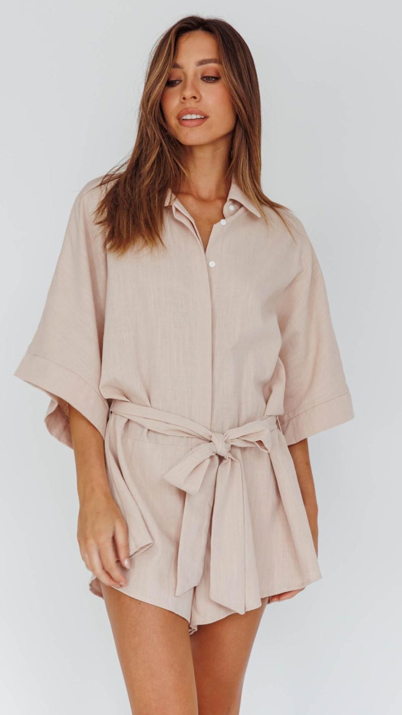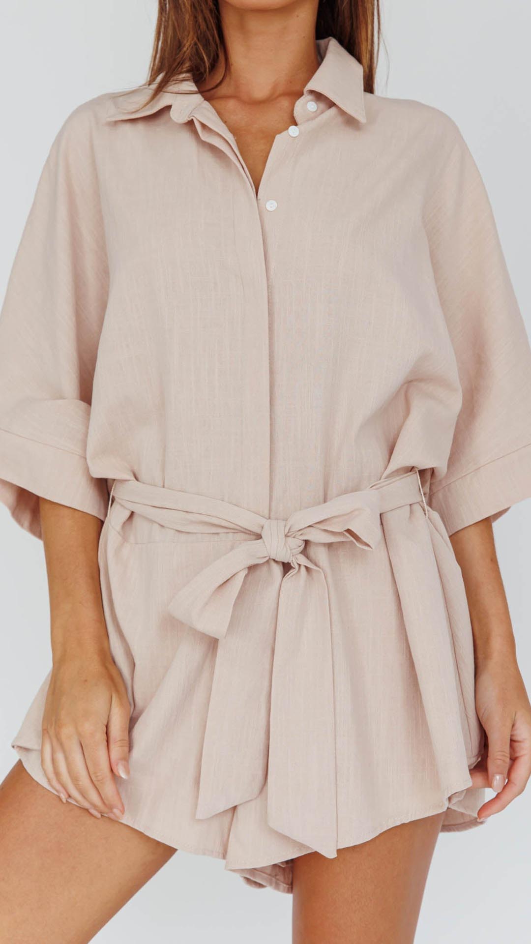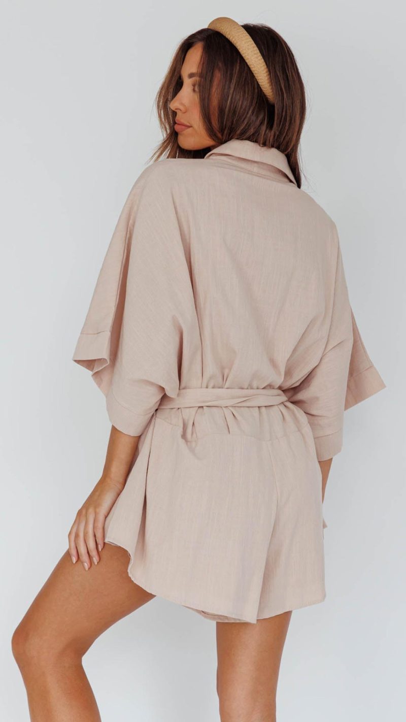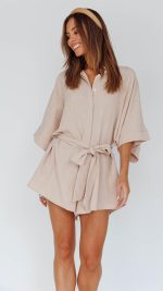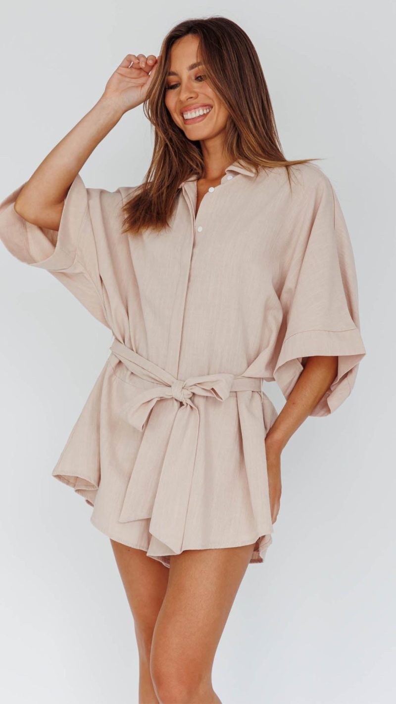 Design Note — Wide sleeves and breathable cotton define this relaxed silhouette, creating airy movement for warm days. A removable tie cinches the waist for definition, balancing the relaxed cut with a customizable fit.