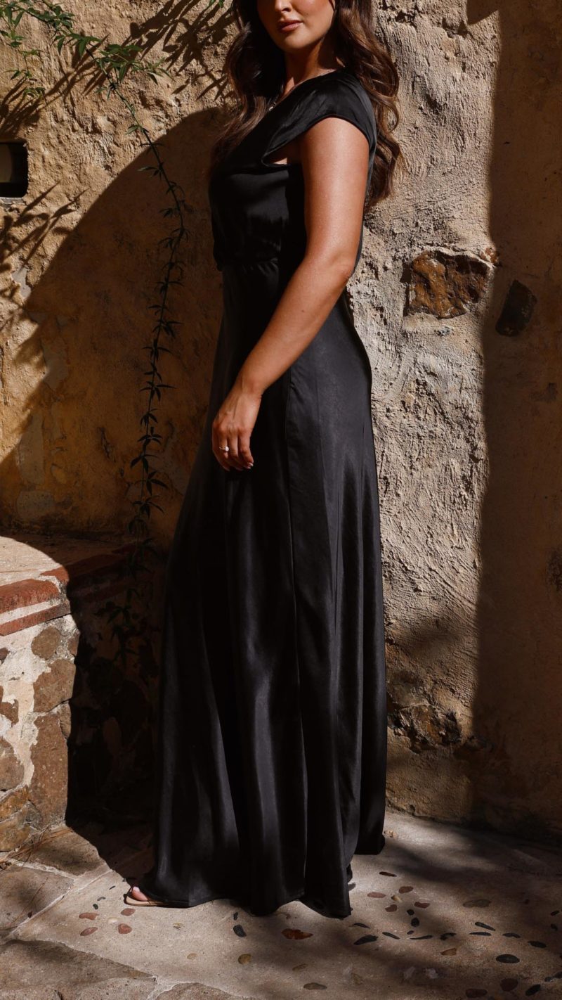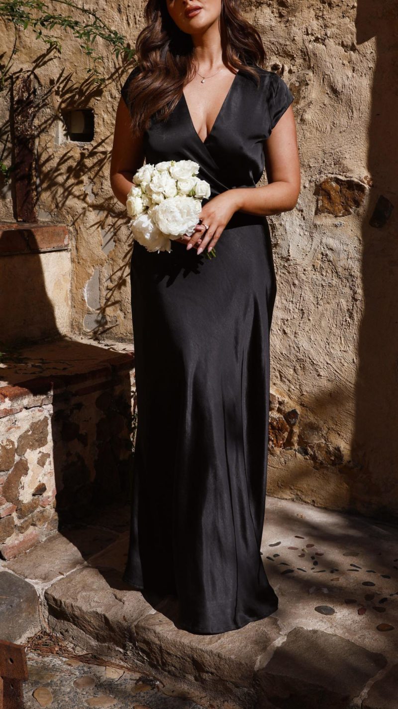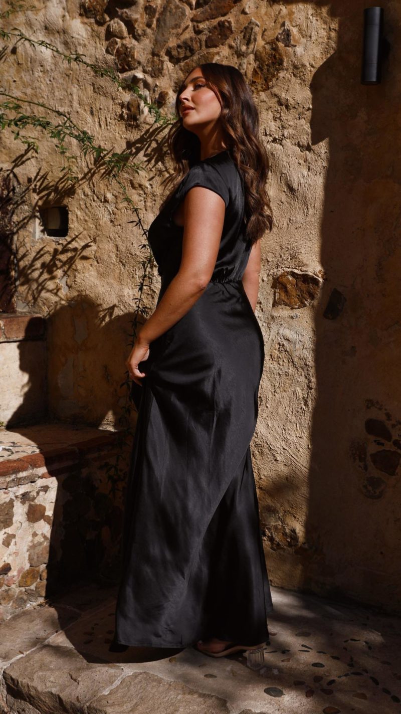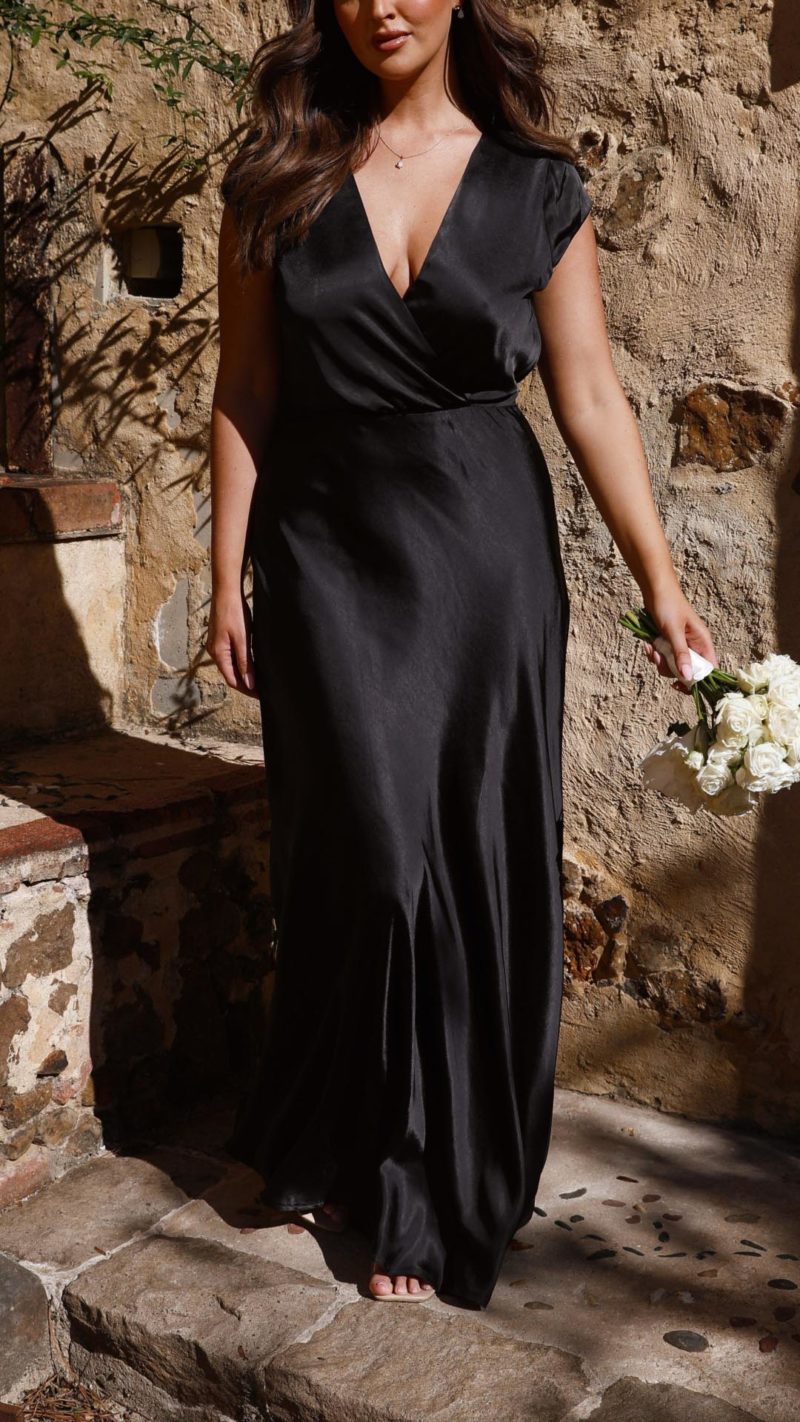 Toperth Serene V-Neckline Black Wrap-Style Maxi Dress