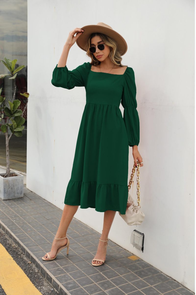 Toperth Solid Color Long Sleeved Ruffle Dress