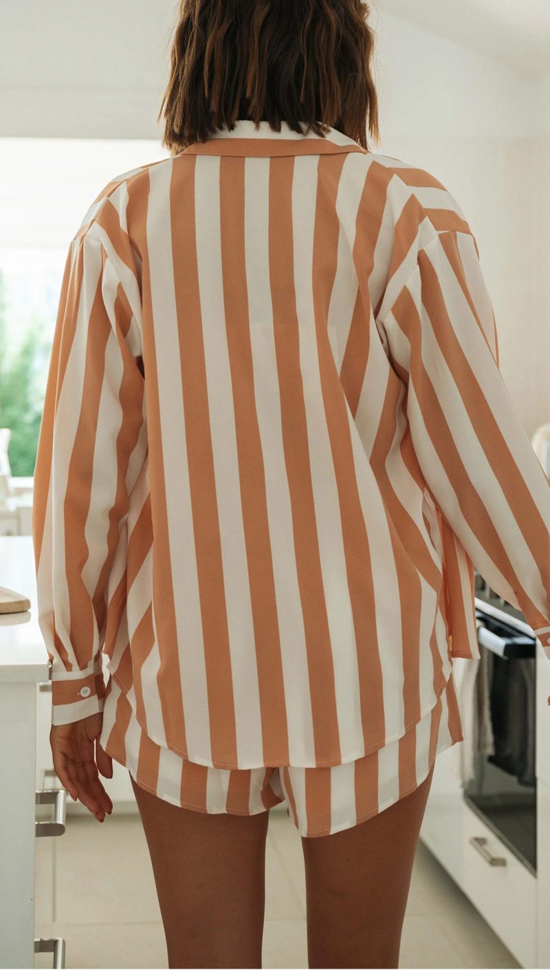 8 reviews for Toperth Striped Long Sleeve Shirt & V-neck Tops & Shorts Three-Piece Set