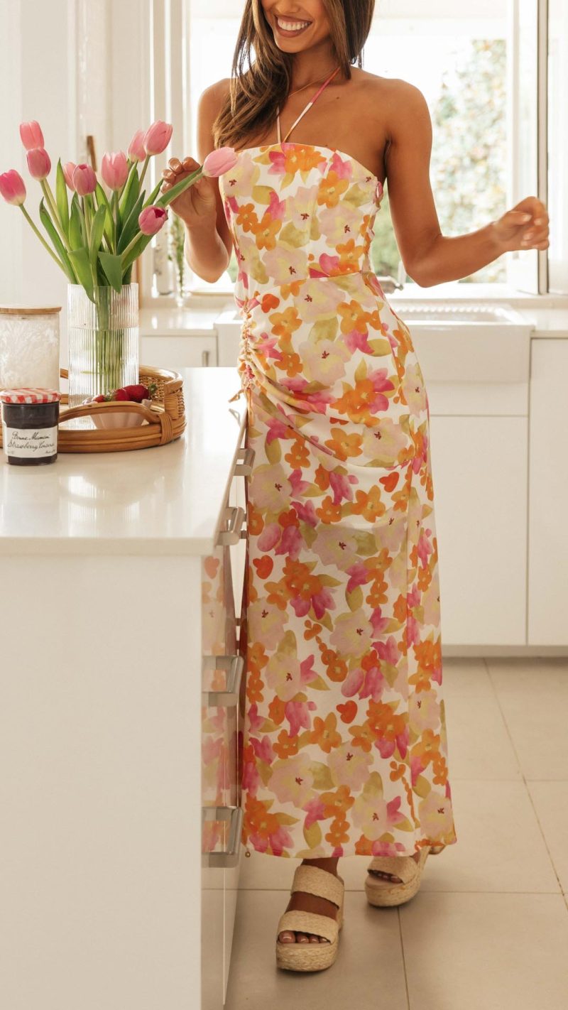 Be the first to review “Toperth Sunrise Floral Tie-Up Strap with Slit Maxi Dress”