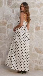 Toperth White/Black Spot Pleated Cotton Maxi Dress