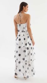 Toperth White Polka Cascading Flounce Sheer Halter Maxi Dress